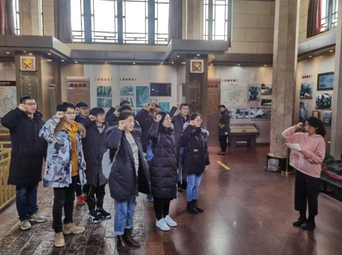 党支部成员严肃认真地接受党史教育的洗礼,党员们对着党旗庄严宣誓,再一次表达为党的事业奋斗终身的决心和愿望。宣誓后,党支部成员自主参观解放阁进行学习,深切缅怀革命先烈的丰功伟绩和崇高精神。