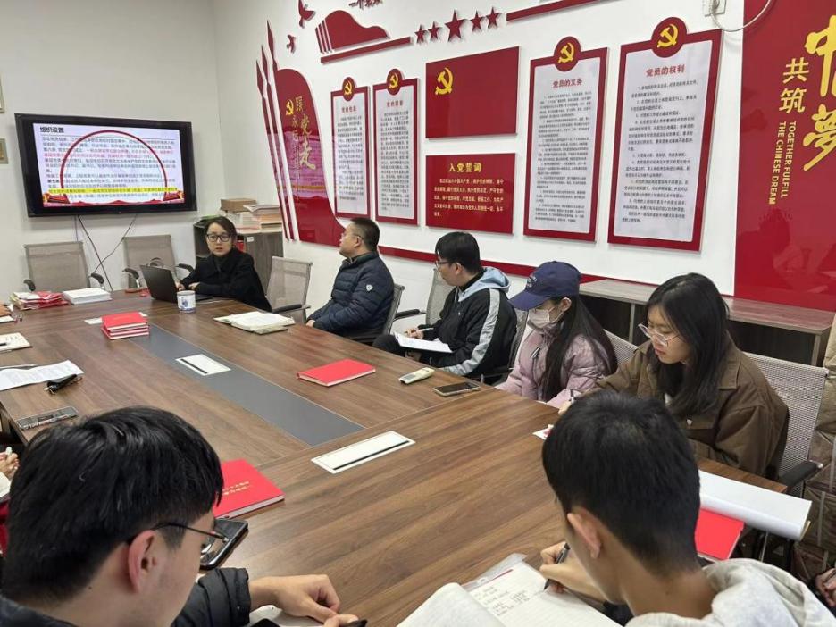 党务秘书于茜首先对党支部工作条例和发展党员工作流程进行讲解。她详细介绍了发展党员的5个阶段、25个程序,党员材料存档与审核,以及党员发展过程中的重要节点等关键问题。提醒各党支部应使用好灯塔系统,及时对支部活动进行总结和记录。