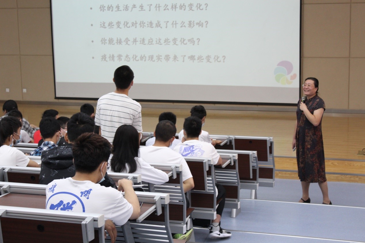 四年的学习生活,能够抓住机遇发展自我,充实自我,为国家为社会贡献自己的力量。她深知初入大学的新生们心中的迷茫,为帮助同学们尽早适应大学学习生活,吴老师列举了三个身边的故事来激励同学们勇于直面挑战,尽快适应新环境。讲座临近尾声之时,吴晓晴老师向同学们强调心理健康的重要性,希望同学们在今后的学习生活里,如果遇到困难,一定要及时向心理老师求助,梳理心中的郁结,保持一个良好健康的心理状态。至此,讲座圆满地落下帷幕。