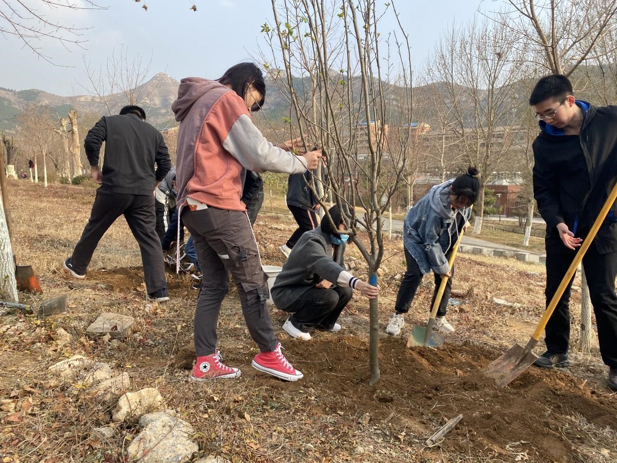 于3月12日在山东大学兴隆山校区学院绿化专用土地开展了“同在蓝天下,共植青年林”植树活动。学院辅导员队伍和志愿者参加实践活动。