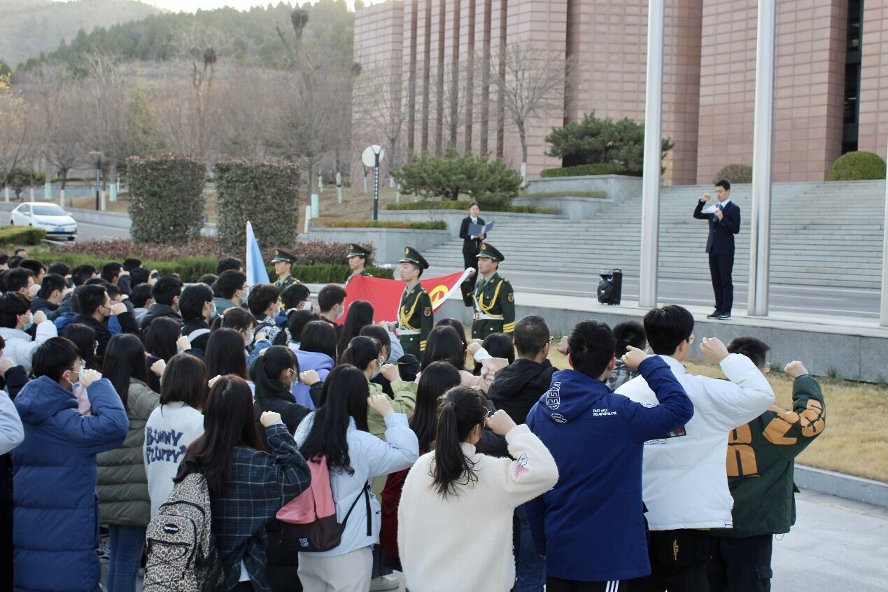 于兴隆山校区图书馆前举行升旗仪式。2019级辅导员田庚出席本次升旗仪式。第38届学生工作委员会委员、360足球比分