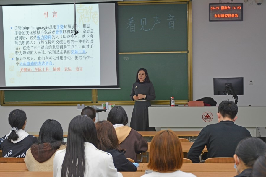 为发挥美育育人功能,提高手语志愿者的专业技能,坚持爱心与服务并举,用爱架起无声世界和有声世界的桥梁。近日,山东大学学生手语协会于兴隆山校区开展手语培训。山东特殊教育职业学院杨海宁老师担任本次培训主讲人,来自六个不同校区的手语协会同学参加本次培训。