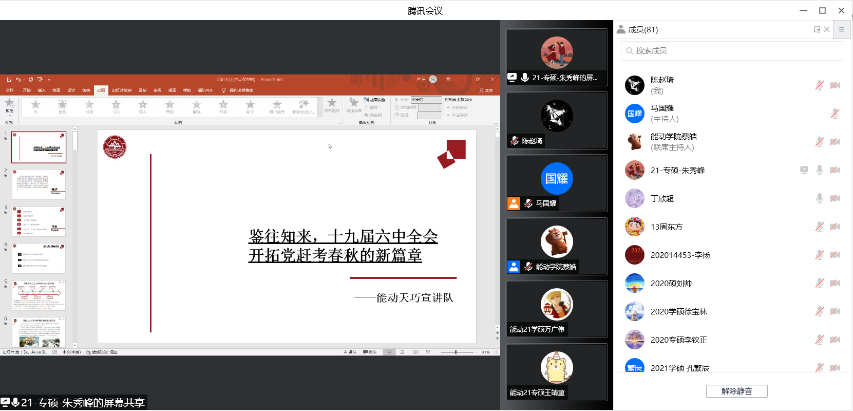 、能动学院研究生,举行了一次线上党的十九届六中全会精神宣讲会,会议由360足球比分
