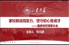 随后,吴晓晴再次强调和传达学校疫情管理政策,并做“奋斗的青春更美丽”主题分享。她表示学校校园管理措施严格遵循山东省疫情防控要求,多措并举保障学生安全。接着,她进一步介绍学院专业发展前景,并对学院特色活动“春笋讲堂”、“薪火讲堂”、“成才讲堂”等素质拓展活动展开介绍,助力实现学生德智体美劳全面发展。对家长关心的学生发展:保研推免、出国留学和就业等问题一一进行详细讲解。吴晓晴建议家长加强与学生的沟通交流、引导学生树立理性平和的乐观心态、及时沟通解决实际困难,家校合力为学生成长发展保驾护航。