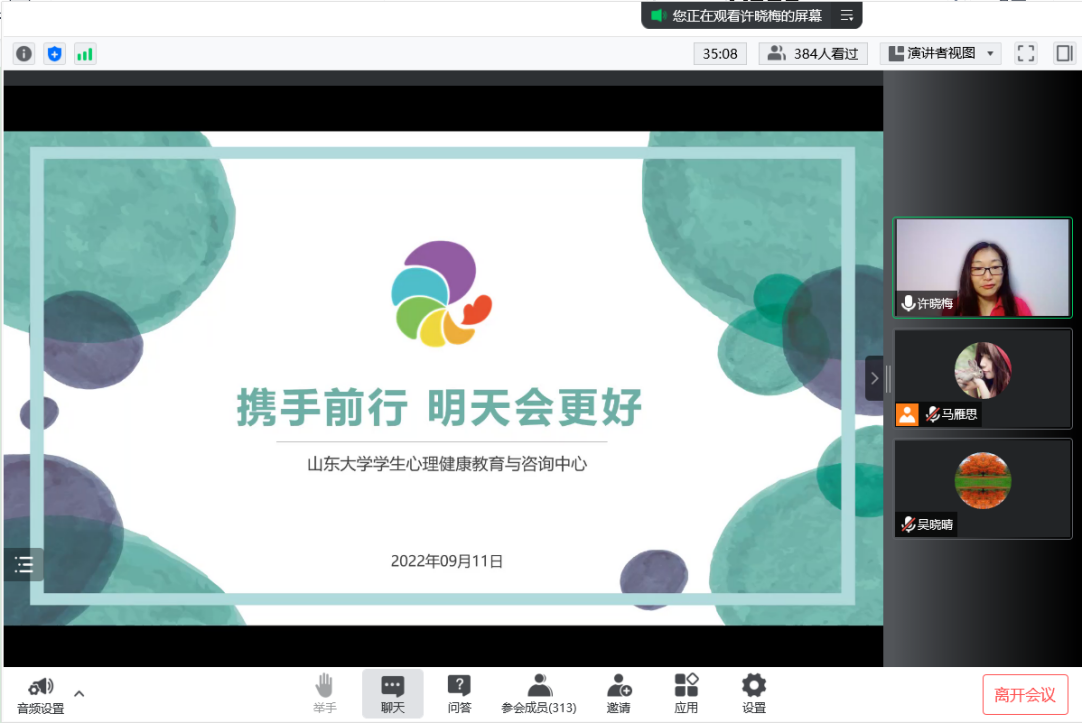 党委书记高瑞、党委副书记吴晓晴、心理健康教育与咨询中心副主任许晓梅出席会议,2022级辅导员马雁思主持会议,300余名新生和家长参与活动。