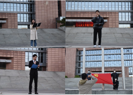随后是国旗下演讲环节,2021级学生代表付晓宇上台发言,号召青年学生主动接住历史的接力棒,努力成长为德、智、体、美、劳全面发展的社会主义建设者和接班人。辅导员韦美佳带领同学们重温党史光辉历程,重申山东大学“学无止境,气有浩然”校训,希冀每一位山大学子立德行、善人品,主动加强思想建设,仰望星空、脚踏实地,勇敢面对前行之路上的荆棘困阻,争做新时代“四有”青年。辅导员郭恒喆向同学们讲述了党在百年来取得的辉煌成就,他强调,未来属于当代青年,广大青年要常具忧患意识,努力学习科学文化知识,主动承担时代大任,勇立时代潮头,以昂扬的姿态和饱满的热情奔向新的赶考之路。最后,全体同学在2021级学生代表江正帅带领下重温入团誓词,牢记初心使命。