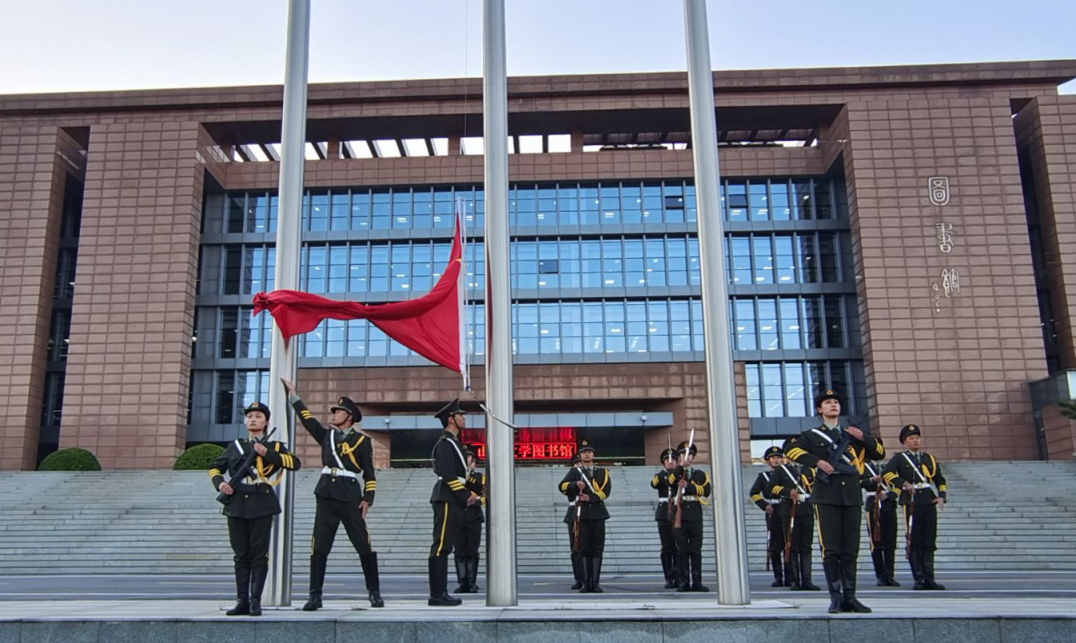 活动伊始,国护队成员迈着矫健的步伐护送国旗入场,伴随着庄严的中华人民共和国国歌,五星红旗冉冉升起,全体参与人员庄重肃立,怀揣对祖国的崇高敬意行注目礼。