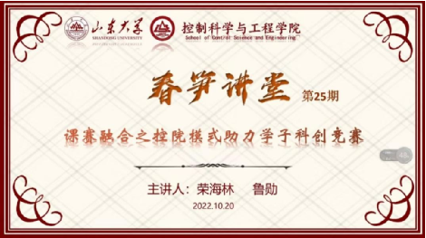 实验教学与创新实践中心党支部书记、全国大学生电子设计竞赛山东赛区组委会秘书荣海林和山东大学学生电子设计协会会长、2019级本科生鲁勋做“课赛融合——助力学子科创竞赛”专题讲座,近300余名同学参与活动。