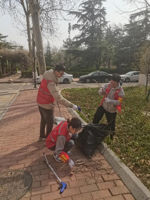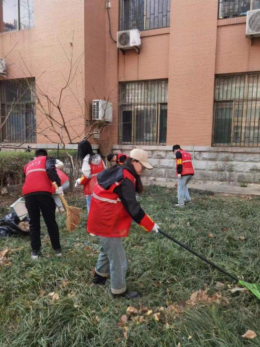 生活服务志愿者团队发起“齐心清道路,共建安全校园”志愿服务活动。对4号楼前道路上的鸟粪、油渍以及花园中的枯叶与生活垃圾进行清理。
