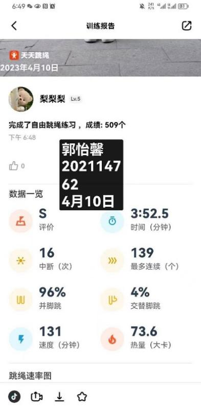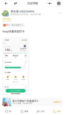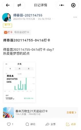 举办了研究生“春来万物生——健康运动打卡”活动。该活动从4月9日开始,于4月30日结束,153位同学积极参与。