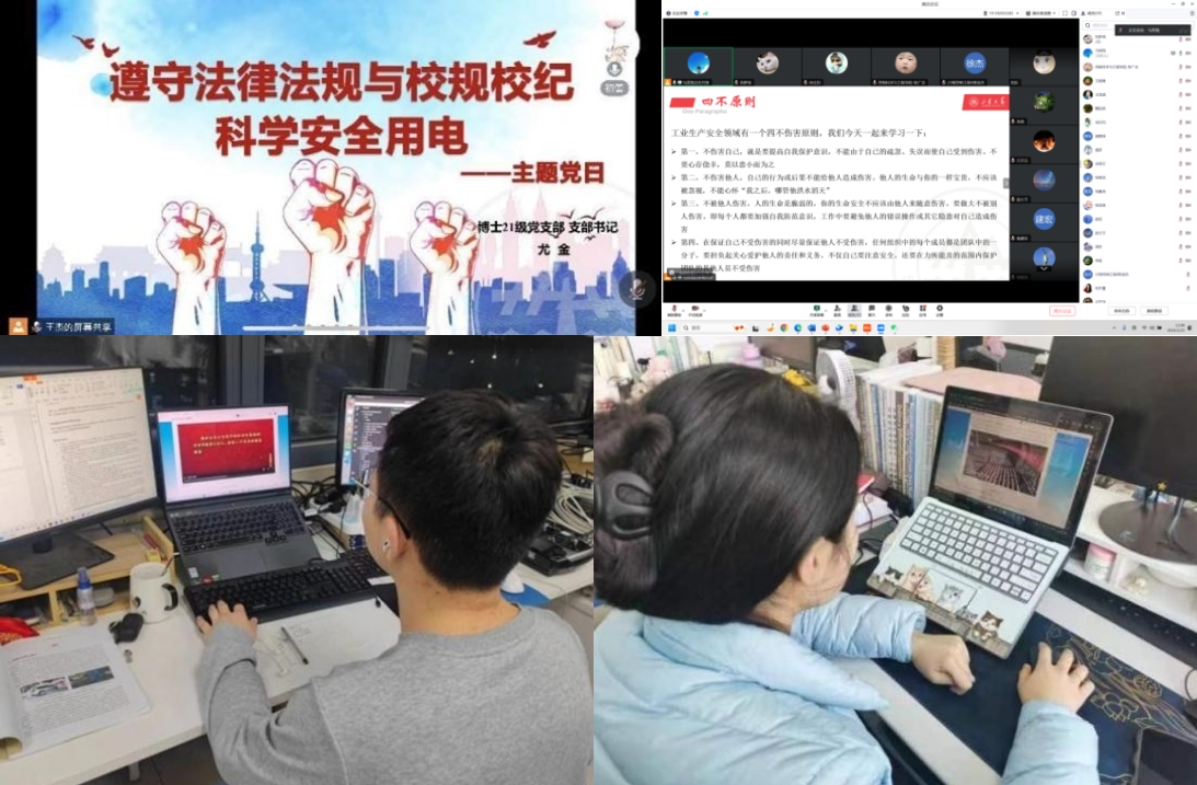 研究生学工队伍则以党支部为带领,组织各团支部开展研究生“开学第一课”安全教育专题学习活动,观看《生命重于泰山》和《红线》宣传教育片,总结学习安全事故背后的经验教训,深入领会习近平总书记关于安全生产的重要论述。各党团支部围绕实验室安全作重点学习,开展安全教育专题学习活动,认真领会习近平总书记关于安全生产的重要论述,深刻理解了坚持人民至上、生命至上,推动树牢安全发展理念的指示要求。同学们纷纷表示,在日常学习生活中,会坚决做到紧绷安全意识之弦,严格遵守学校和实验室相关安全要求,维护校园安全,保障正常学习科研秩序。