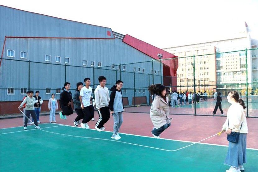 活动中,项目设置丰富多样,充满趣味与挑战。踩砖过河项目中,同学们精心计算步伐,在有限的砖块上努力保持平衡前行,展现身体控制能力和策略规划能力。投沙包区域,沙包在空中交错飞舞,同学们精准投掷相互配合,充分考验手眼协调能力与配合默契程度。三人四足项目以团队合作为重,每组同学紧密配合,齐声喊着口号,步伐协调一致地向着目标冲刺。在跳大绳项目中,长长的跳绳有节奏地拍打着地面,同学们轻盈跳跃,组队合作,现场洋溢着青春的活力。