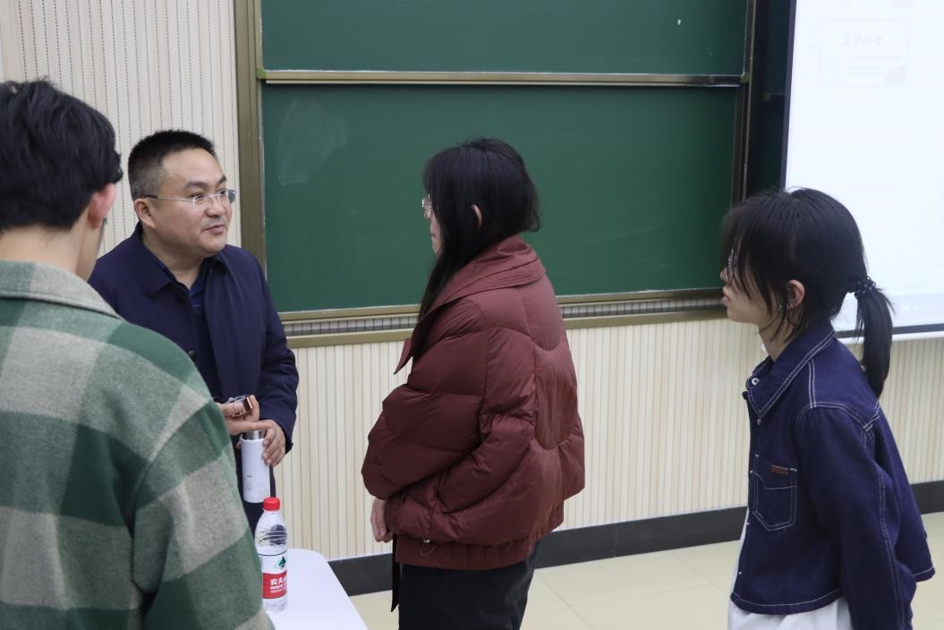 考研指导环节,李文振从心理准备、规划制定、精准定位等方面入手,分享院校专业选择、复习策略及心理调适方法,并鼓励学生坚定个人选择。面试技巧环节,他强调,在面试时应表现对岗位领域的清晰认知、对公司工作的热情与意愿,展示能胜任职位的能力,他为同学们提供了一套科学系统的求职方法与策略,鼓励学生结合自身兴趣和专业优势,找准职业定位。简历制作环节,他指出,简历是求职者的“敲门砖”,内容上要精准匹配岗位需求,用数据和成果量化工作,让招聘者快速抓取亮点。出国深造环节,他提醒同学们关注各国留学政策变化和奖学金信息,本科期间丰富科研、实习经历提升个人竞争力,合力选择学校和专业。讲座结束后,学生就考研政策、就业指导等热点提出疑问,李文振积极为学生答疑解惑。