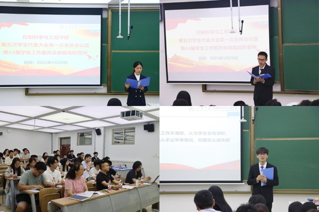 成功举办第五次学生代表大会第一次全体会议暨第43届学生工作委员会换届竞职答辩会。学院党委副书记李文振、团委书记郭亦玲、本科生各年级辅导员、第41、42届学生会主席团成员和学生代表参加本次会议。