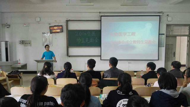 生物医学工程专业协会成立暨2016级师生见面会在兴隆山教学楼5307教室举行。学院党委副书记张振山参加成立仪式并讲话。生物医学工程专业的老师和2016级新生出席了会议。