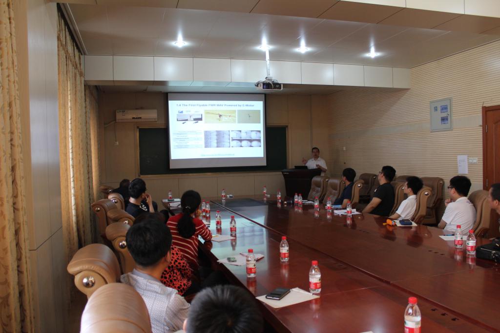 郭教授在学术报告中介绍了国内外关于新型飞行器的研究和应用现状,从微型、小型、大型飞行器三方面逐步介绍了气动弹性技术在飞行器设计中的应用。针对不同飞行器的应用需求,需要提出不同的设计方案,也就会遇到不同的设计困难。郭教授团队设计提出一种融合自旋和扑翼两种方式的增式飞行翼,增式飞行翼成功解决了传统飞行器效率低、高能耗的缺点、并在突风和风洞实验中,将飞行器的减缓率显著提高到17%-18%。该团队所提出的一种具有折叠机翼的新型三旋翼飞行器采用新型柔性材料,可实现机翼90°旋转,相比传统四翼飞行器,提高了起飞的高效性、悬停的稳定性和降落的安全性。报告最后,郭教授针对目前新型飞行器设计所面临的挑战,预测了今后的发展方向和研究热点。