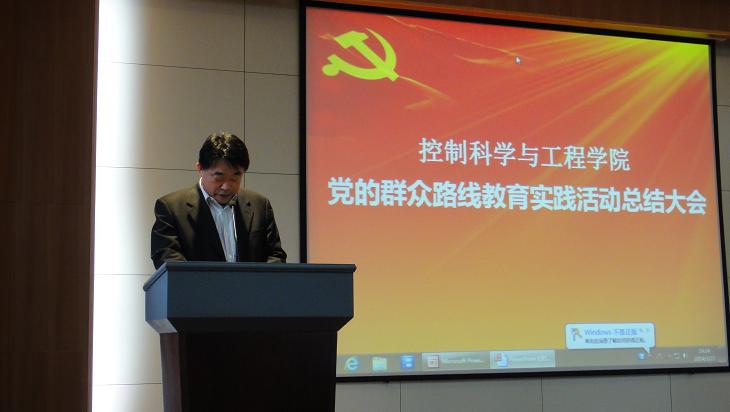 领导班子认真贯彻学校党委部署,精心谋划组织,扎实开展学习教育活动;聚焦“四风”问题,加强和改进作风建设;认真开展批评和自我批评;狠抓整改落实,推进制度建设,顺利完成了各个环节任务,取得了初步的阶段性成果。他还强调指出,党的群众路线教育实践活动是一项综合性、长期性、系统化的工程,总结收尾不等于结束收场,今后要将将服务师生员工作为重要价值取向,真正把教育实践活动打造成“群众满意工程”。
