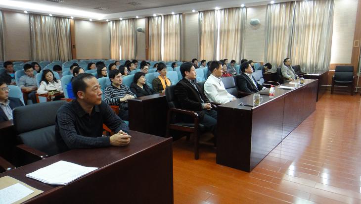 党委书记王志明作学院教育实践活动总结报告,学院党委副书记徐波主持大会。