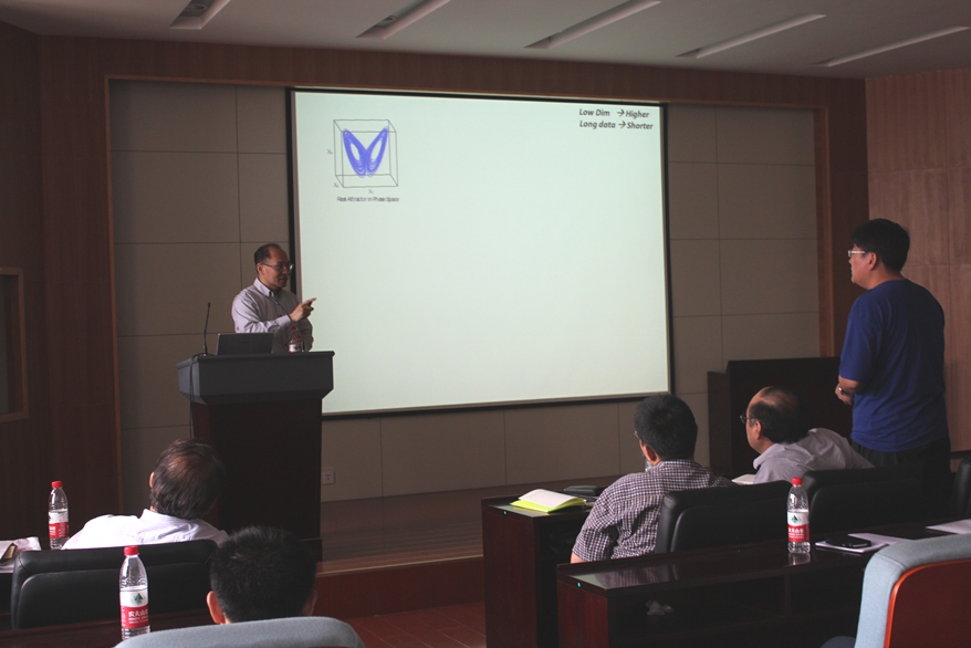 陈洛南研究员在学术报告中首先针对短时间序列阐明了传统的Granger因果关系分析模型的不适用性,然后分别从短时间序列的动态特性、因果网络的紧致性及条件因果关系等三个方面介绍了从短时间序列数据中推导因果关系的方法,继而,陈研究员又介绍了因果关联的研究现状及其在非线性动力系统、基因调控网络等领域的应用成果。最后,陈研究员详述了因果关系在系统生物学、生物医学信息、生物医学大数据、精准医疗等近来国际热点研究领域的重要应用前景,也提出了短时间序列数据中因果关联分析中有潜力的研究的方向和问题。在学术报告后的提问环节,陈研究员和学院的青年教师、学生进行了热烈的讨论。