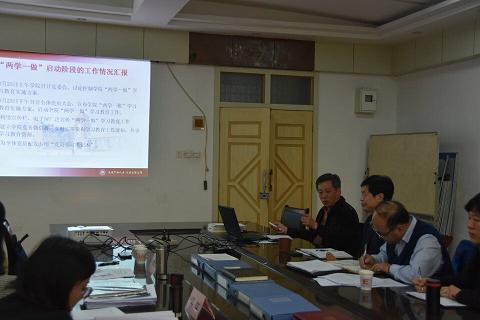 14时30分,督导组首先与学院八位教工党支部书记和六位师生党员代表进行了座谈。与会同志结合各自支部“两学一做”学习教育工作开展以来所做的实际工作,对“两学一做”学习教育的开展情况、发挥党支部主体作用的情况以及存在的问题和建议等实事求是地交流了自己的心得体会。会上,督导组还详细查阅了学院“两学一做”学习教育工作的汇总材料;细致查看了学院发展党员情况、党组织关系排查情况、党费补缴情况;翻看了党员手抄的学习笔记等相关学习材料。督导组组长戴智章同志在座谈会最后作了总结发言。他在全面总结了大家的发言情况后,特别肯定了基层党支部在“两学一做”学习教育中主体作用发挥情况,对支部书记尽职尽责,党员同志发挥先锋模范作用等工作给予了积极评价。