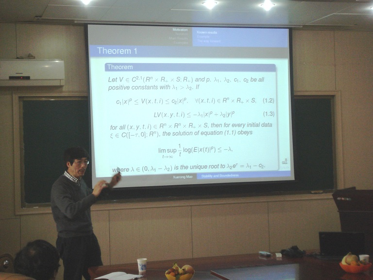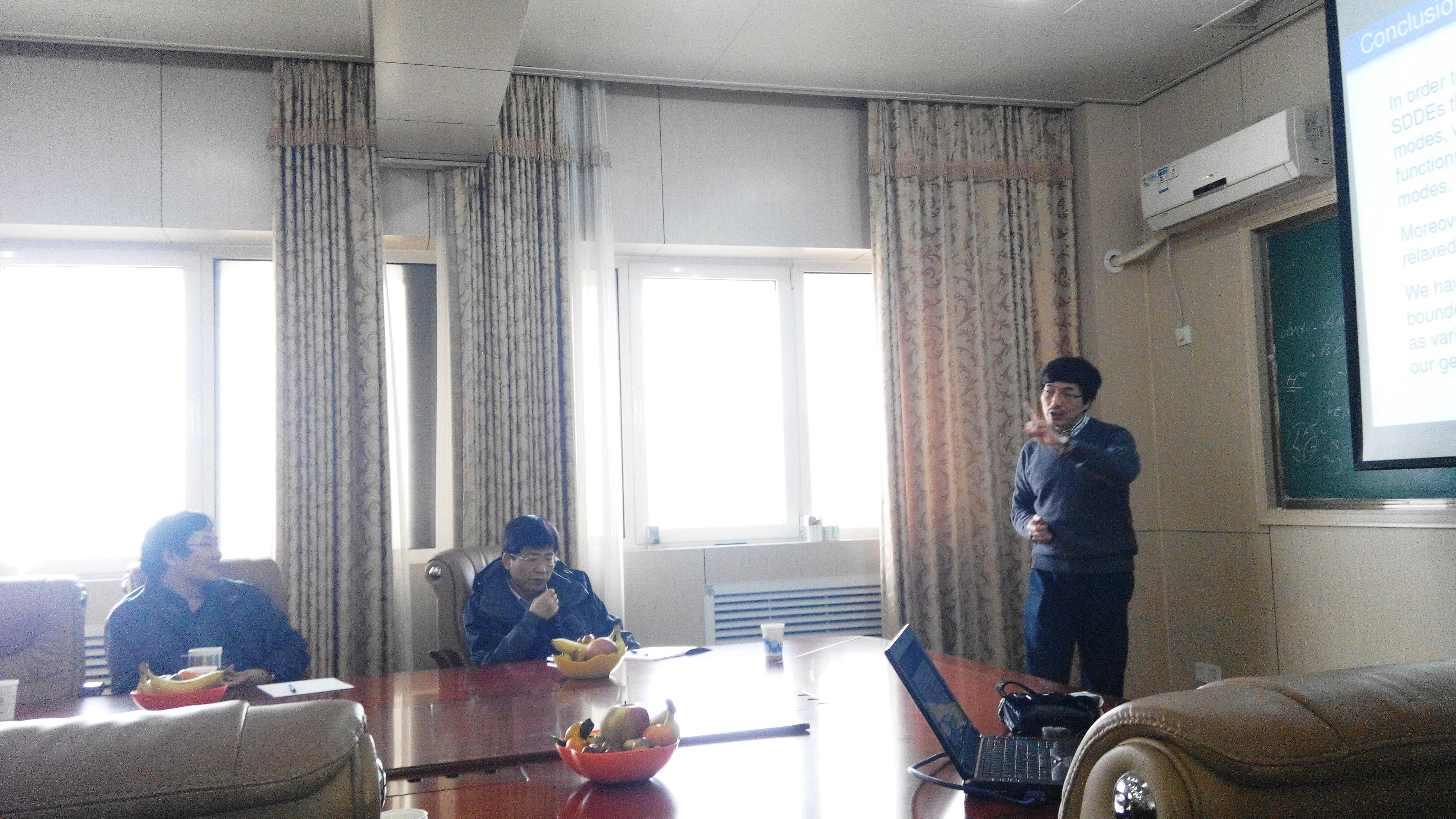 ,并在山东大学千佛山校区主楼6层控制理论会议室作了题为《Stability and Boundedness of Nonlinear Hybrid Stochastic Differential Delay Equations》和《Stabilisation of Continuous-time Hybrid Stochastic Differential Equations by Discrete-time Feedback Control》的两场学术报告。报告会由360足球比分