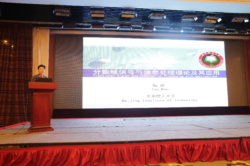 开幕式结束后,来自美国加州大学默塞德分校的YangQuan Chen教授、上海大学的李常品教授、北京理工大学的陶然教授分别作了题为“Fractional Calculus and Its Connection to Creativity”、“分数阶动力学及其应用”、“分数域信号与信息处理及其应用”的大会报告。YangQuan Chen教授在报告中,从分数阶随机性、平均的终结、复杂性等角度阐述了分数阶微积分与创造性的必然联系。李常品教授的报告回顾了分数阶微积分的关键历史节点,介绍了分数阶微分方程的定解问题,及其团队在稳定性分析、线性化、高维约化等方面的工作。陶然教授的报告围绕分数阶信号处理的理论与应用,概述了分数域信号处理的国内外研究团队及其最新研究进展,介绍了以分数域采样、分数域滤波和多分数域联合分析等理论方法形成的分数域信号处理体系及其在雷达、通信、导航和光学测量等方面的应用。指出了分数域信号处理在解决高速、高加速目标探测与识别、城市和海洋环境中的低慢小目标探测与识别等当前国家重大需求问题上起到的关键作用。最后,讨论了分数域信号处理未来的发展方向和应用潜力。
