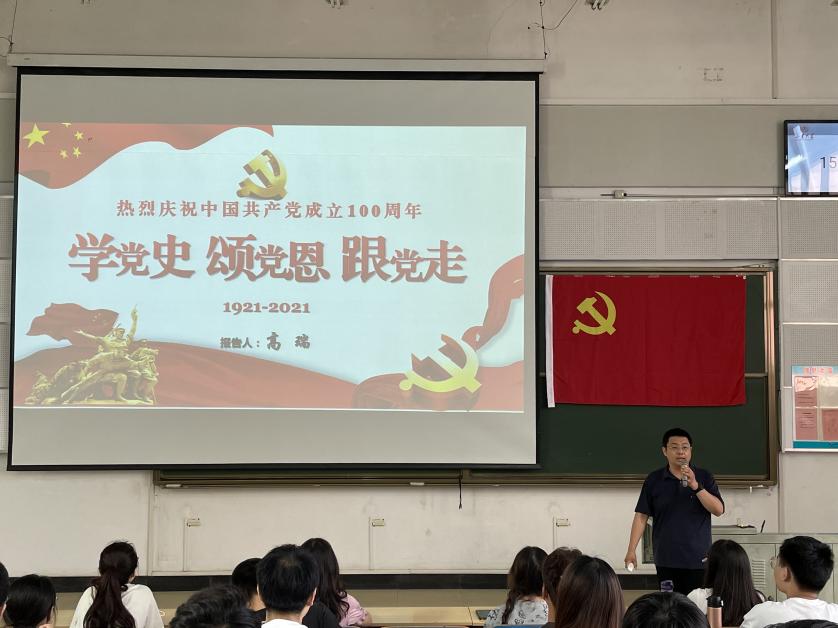 党委书记高瑞分别面向学院教师、支部书记、学院学生党员、入党积极分子作了题为“学党史、颂党恩、跟党走”的党史教育讲座。高瑞书记带领大家一起回顾了中国共产党100年光辉历程,报告从“没有共产党就没有新中国”“没有共产党就没有社会主义中国”“没有共产党就没有中国特色社会主义”和“党的百年光辉历程给我们的深刻启示”四个篇章讲述了中国共产党百年筚路蓝缕、波澜壮阔的历史进程,阐述了党的十八大以来,以习近平同志为核心的党中央带领全党全国各族人民开创了中国特色社会主义新时代,尤其是在2020年的新冠肺炎疫情阻击战中,显示出社会主义制度的优势以及党员的先锋模范作用,山大人在抗疫中也充分体现出家国情怀和社会担当。在中国共产党成立100周年和山东大学建校120周年之际,结合学校“十四五”规划和“双一流”建设目标,高瑞书记对学生党员提出三点要求:一是要不忘初心、牢记使命,为新时代全面建设社会主义现代化国家而努力学习专业知识。二是要明纪律守规矩,永葆共产党员的先进行和纯洁性,不断提高政治素养和思想觉悟。三是要充分发挥党支部的战斗堡垒和党员先锋模范带头作用,带领全体学生学习强国、科研报国,积极参加实践锻炼,对标国家战略需求,争做时代新人。最后,高瑞书记寄语毕业生党员,要坚定报国志向,厚植家国情怀,弘扬山大精神,敢于突破创新,在祖国最需要的地方绽放青春力量。
