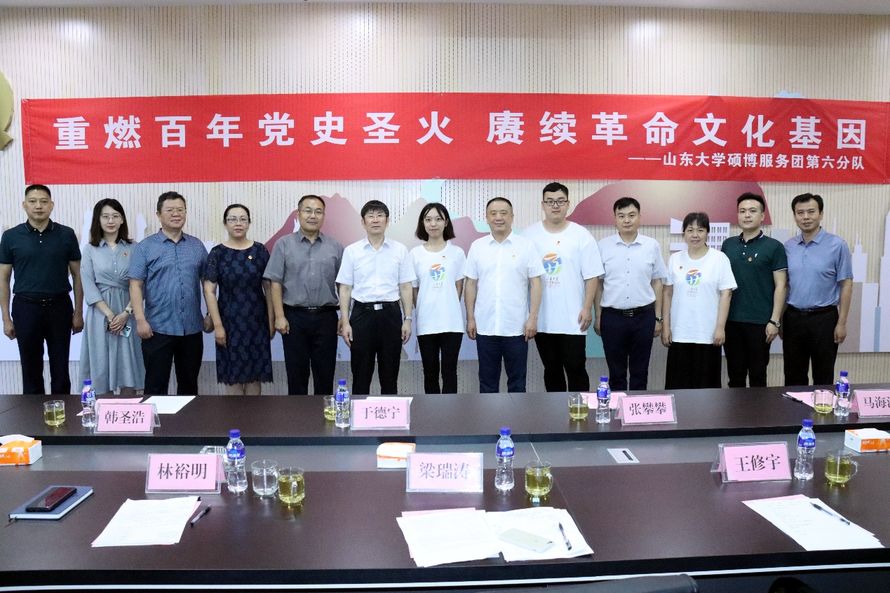 在听取师生们的汇报后,韩圣浩指出,山东大学始终践行服务山东战略就是服务国家战略、服务山东发展就是服务国家发展、扎根齐鲁大地就是扎根中国大地的发展理念,自2004年起就同烟台市建立一系列合作平台,同万华集团、玲珑集团等一大批烟台市重点企业在人才培养、课题合作、联合攻关等方面展开全面务实的合作,取得了很好的效果。韩圣浩表示,同学们依托暑期社会实践,立足烟台,深化开拓,对于推动服务山东工作更广更深更实发展具有积极意义,并对调研团师生提出三点要求:一是要提高政治站位,传承红色血脉。切实增强调研针对性和实效性,完善提升调研方法,认真分析和梳理胶东红色文化发展现状、传播模式存在的困难和问题,为当地红色文化进一步传播发扬“查漏补缺”。二是要深入分析思考,抓住实质问题。要聚焦调研中发现的关键问题,更要深入研究总结问题背后实质的、更深层次的原因,为下一阶段的解决落实奠定基础。三是要强化责任意识,推动解决落实。鼓励同学们与当地博物馆、纪念馆对接联络,形成弘扬胶东红色文化的强大合力,分类别形成问题清单和任务清单,出实策、鼓实劲,以钉钉子的精神攻坚克难,多方面多角度全方位探索胶东红色文化教育新形式,开辟胶东红色文化的传播新路径。同时,韩圣浩强调,近期全国各地自然灾害多发、疫情防控形势仍然严峻,广大师生在开展社会实践的同时一定要将健康安全放在第一位,提高防范意识,杜绝侥幸心理、麻痹心理。