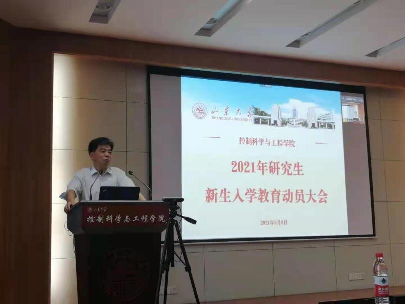 高瑞首先对全体新同学的到来表示祝贺和欢迎,他从学科优势、学科战略布局、师资力量、科研项目、国际交流和学生就业等方面详细介绍了学院整体发展及学科育人体系,鼓舞激励新同学依托学院雄厚实力,坚定学术自信心,提高科技创新和科学实践能力,在山大百廿新征程和自我人生新起点上勇攀高峰,不断追求卓越。