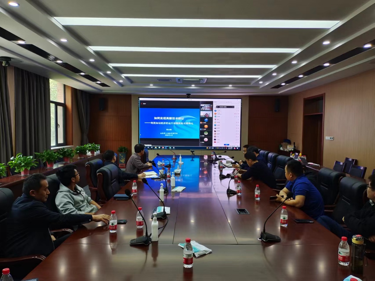 会议第二阶段,为推进封控期间学院事业高速发展,深化产教融合、校企合作,加强需求对接,学院邀请了山东省工业技术研究院耿亚梅,做了题为“如何实现高额技术转让——利用知识经济的运行规则实现成果转化”专题辅导报告,报告由国家大学科技园管理办公室主任宋锐主持。