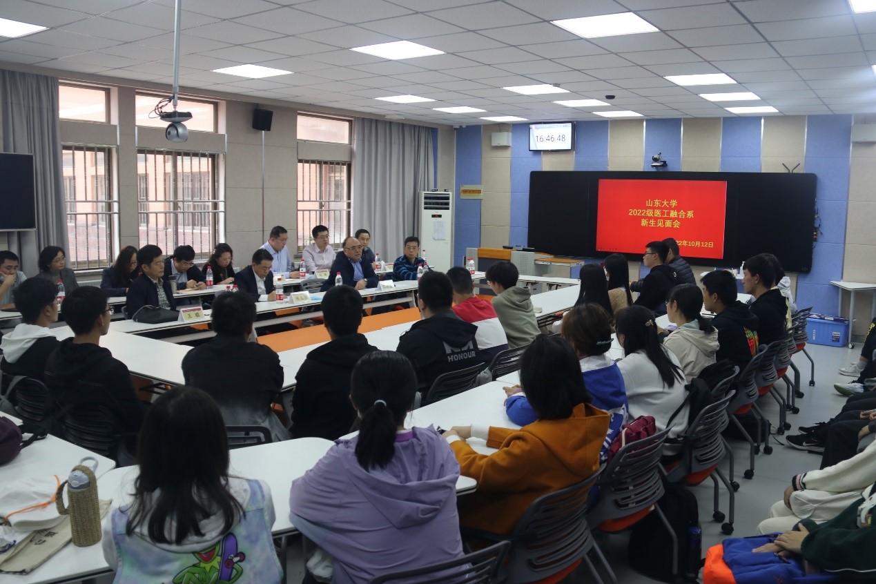 院长张承慧、副院长朱文兴、医工融合系主任王聪出席见面会。山东大学医工融合系骨干教师、齐鲁医院医生代表以及2022级医工融合系全体本科新生参加见面会。医工融合系党支部书记李可主持会议。
