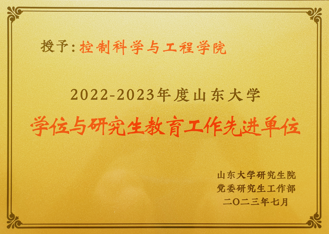 获评2022-2023年度山东大学学位与研究生教育工作先进单位。