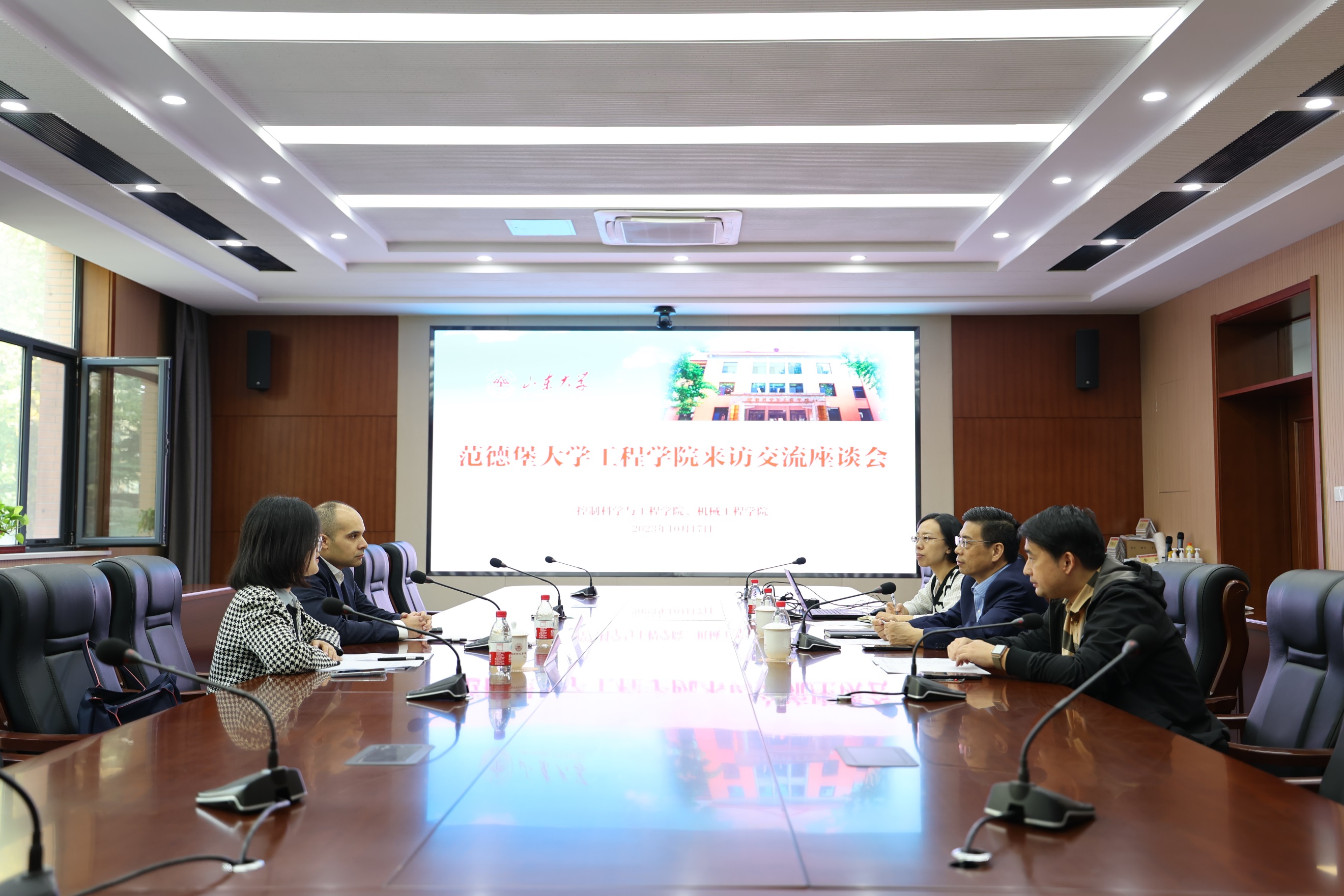 副院长朱文兴接待来访客人,并进行座谈交流。机械学院外事秘书李磊、国际事务部相关负责人参加座谈。