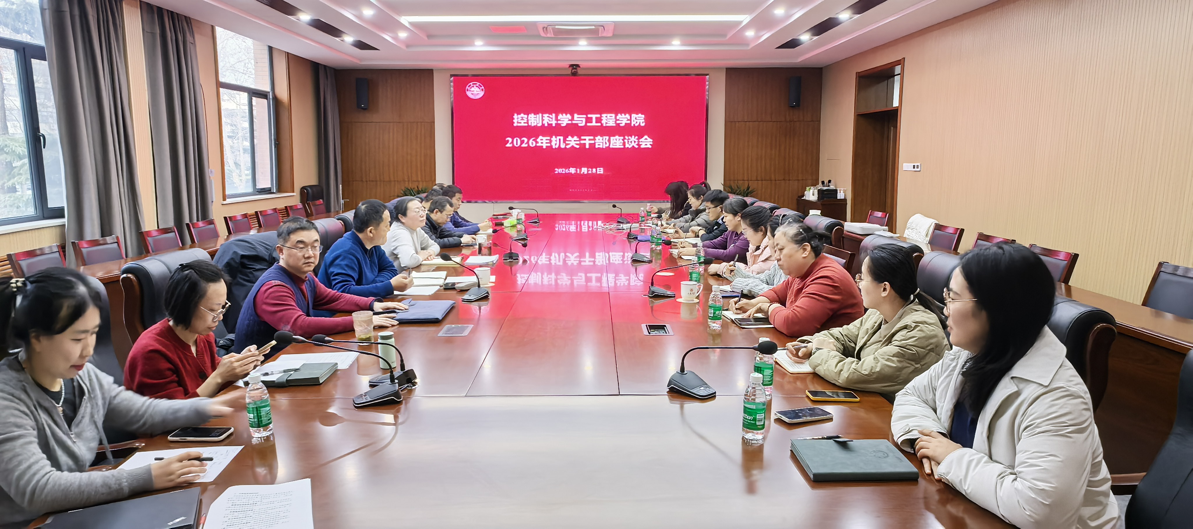 在4号楼德法厅召开机关工作交流研讨会,学院管理服务团队成员、全体机关工作人员参加会议,党委书记吴晓晴、常务副院长王光臣出席会议并讲话。